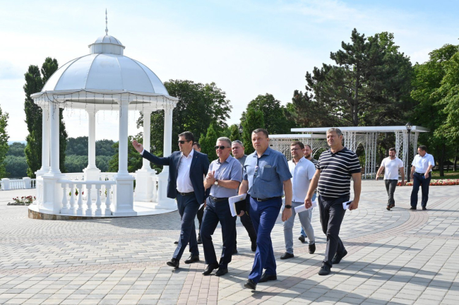 Бендеры, 14 июля. /Новости Приднестровья/. В ходе инспекции по Бендерам Президент ПМР Вадим Красносельский побывал в обновляемом парке «Октябрьский». Как сообщает пресс-служба главы государства, значительный объём работ там уже провели. Набережная преображена. В центральном секторе реконструкция завершается. Боковые участки продолжают благоустраивать.