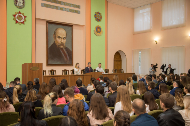 В ходе полуторачасовой беседы поговорить успели о многом. Поздравляя главный приднестровский вуз с 88-летием, Вадим Красносельский назвал его местом, где бурлит молодая энергия и рождаются новые идеи, и призвал их авторов активнее включаться в жизнь государства.