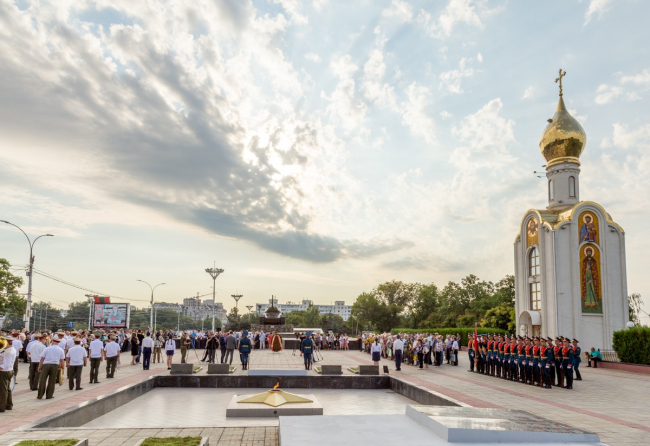 Этим утром по центру Тирасполя прошёл Марш памяти, в котором приняли участие сотни горожан и гостей столицы. Мероприятие было продолжено митингом-реквиемом «Память сердца» на Мемориале Славы.