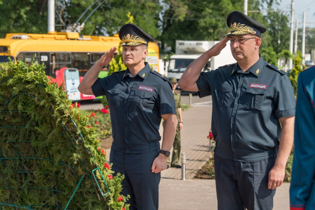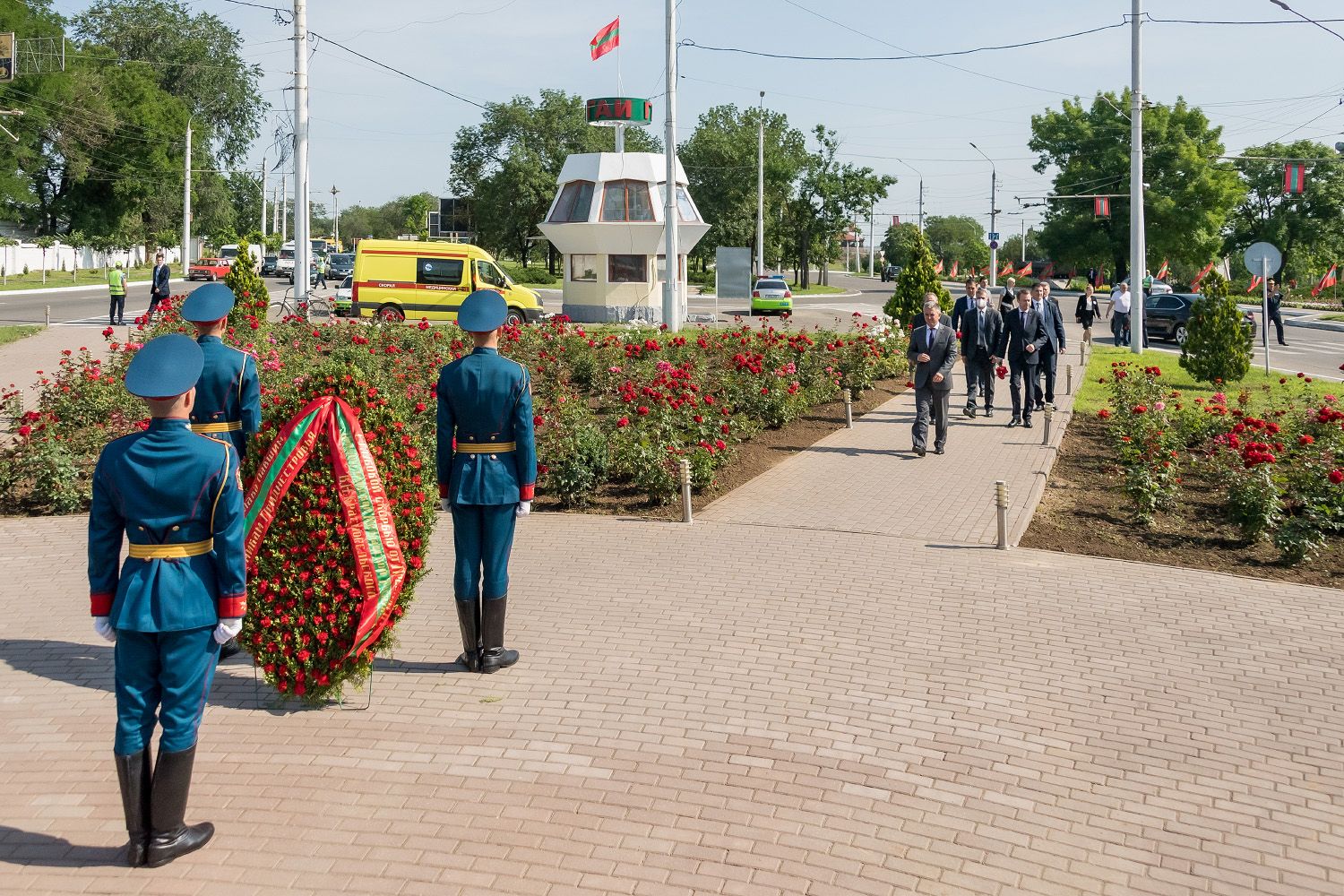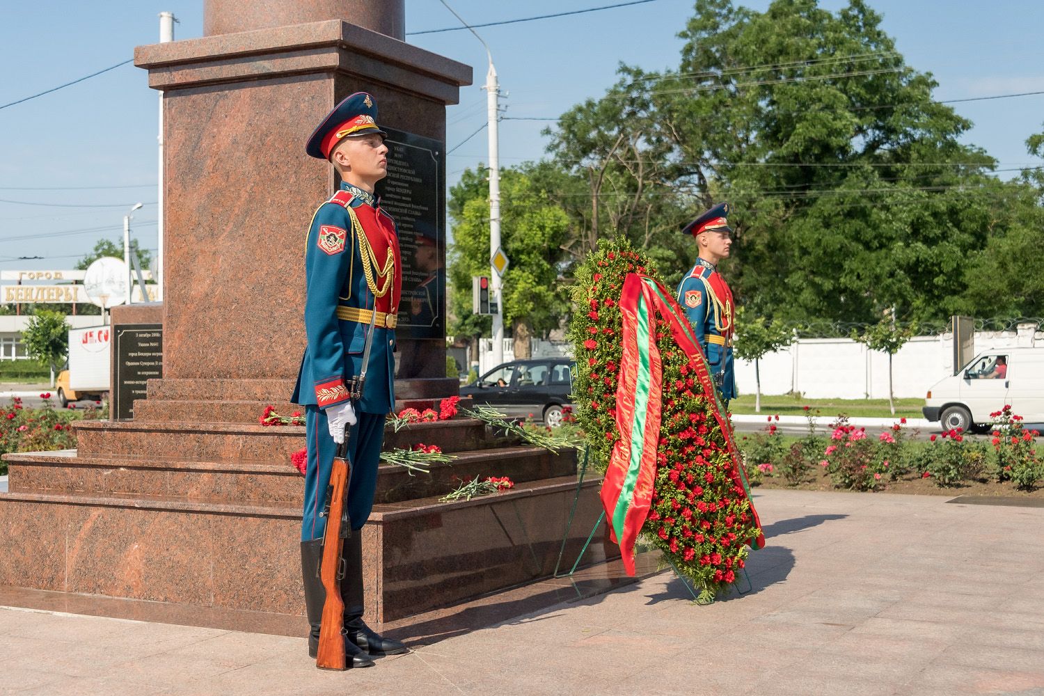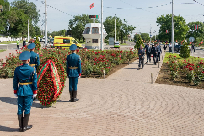 Отдать дань памяти погибшим в 1992 году за независимость Приднестровья к стеле «Город воинской славы» прибыл Президент Вадим Красносельский. Глава государства возложил траурный венок к памятнику-комплексу, на каменных колоннах которого перечислены основные вехи истории Бендер. Среди них и трагические события молдо-приднестровского конфликта.