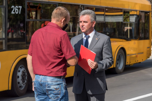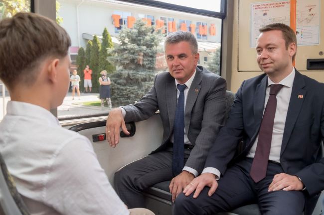 Президент ПМР принял участие в открытии обновлённой троллейбусной линии маршрута № 2