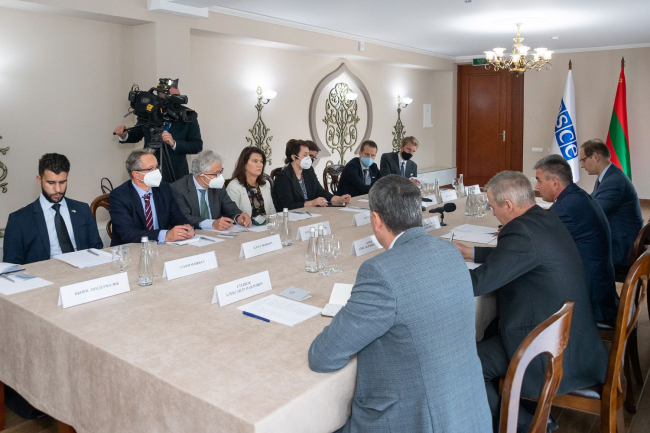Сформированная приднестровской стороной повестка сегодняшней дискуссии аналогична той, что была направлена в последних числах сентября в адрес руководства Республики Молдова. Кроме того, с представителями ОБСЕ предстоит обсудить планируемую на ноябрь текущего года расширенную встречу формата «5+2», отметил, открывая дискуссию, Вадим Красносельский.