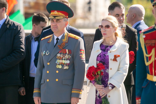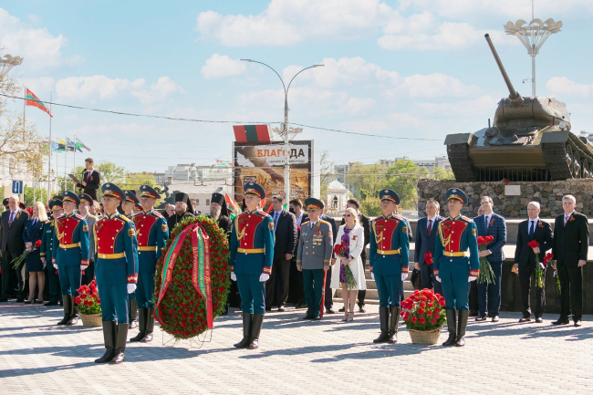Президент Приднестровья Вадим Красносельский возложил венок к Вечному огню, символизирующему память народа о павших героях, борцах за свободу Родины.