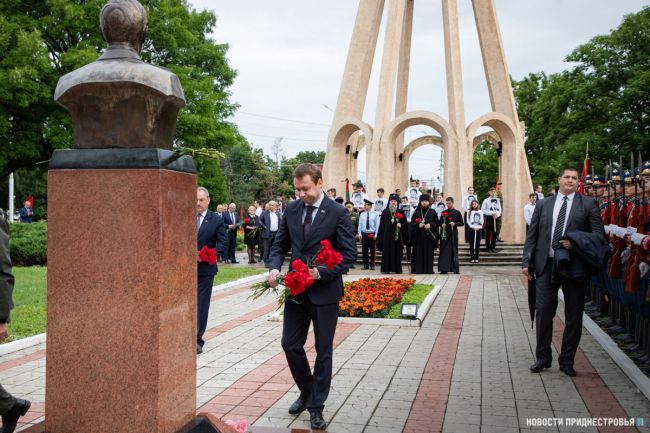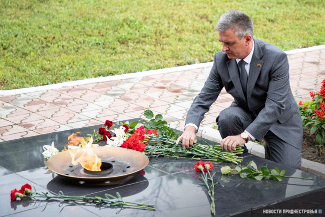 Президент ПМР возложил цветы на Мемориале Памяти и Скорби в Бендерах