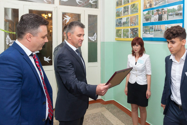 Кроме того, ученики школы №4 – участники конкурса «Юный инспектор движения», всевозможных экологических и патриотических акций. С гордостью рассказали президенту и о том, что парк, высаженный в центре Дубоссар, – заслуга учеников этой школы.