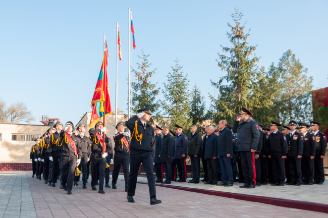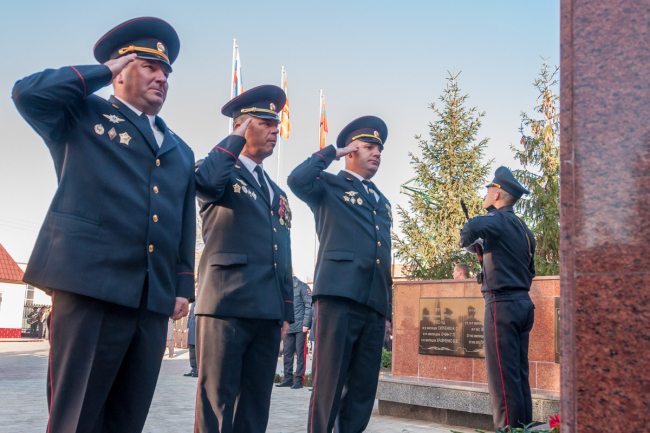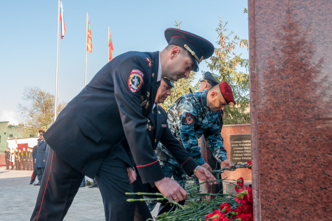 По сложившейся традиции, перед началом мероприятия собравшиеся возложили цветы к мемориалу погибшим при исполнении служебного долга сотрудникам. Всего за четверть века существования приднестровских органов правопорядка более сорока милиционеров отдали свои жизни за мир и покой сограждан.