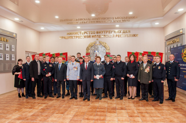 За добросовестное выполнение служебного долга, высокий профессионализм и в связи с Днем милиции ряд действующих сотрудников и ветеранов МВД ПМР отмечен государственными и ведомственными наградами.