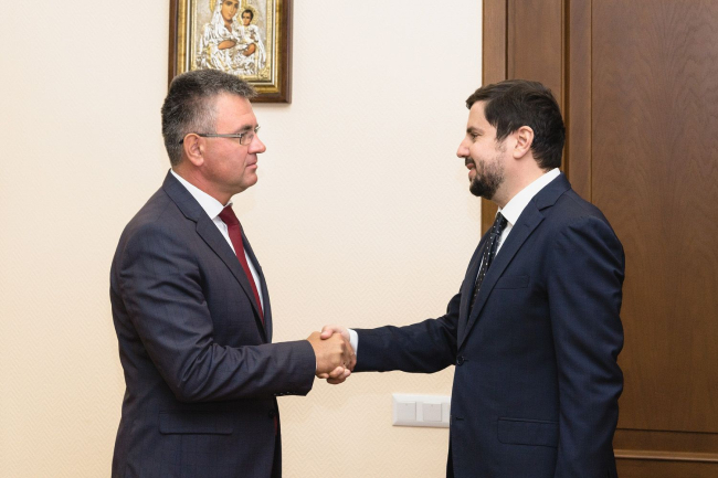 Тирасполь, 9 октября. /Новости Приднестровья/. В Приднестровье прибыли глава Представительства Россотрудничества в РМ Михаил Давыдов и его коллега Николай Журавлёв. Сегодня они встретились с Президентом Вадимом Красносельским.