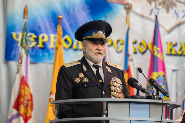 О деятельности ЧКВ говорил Президент ПМР. Вадим Красносельский отметил сложность нынешней обстановки, подчеркнув значимость участия казачества в охране рубежей страны и обеспечении безопасности приднестровцев. Глава государства затронул некоторые аспекты истории казачества - в том числе ее трагические страницы. Он упомянул включение в календарь памятных дат Дня памяти жертв репрессий казаков, напомнив, чем был вызван геноцид казачества.
