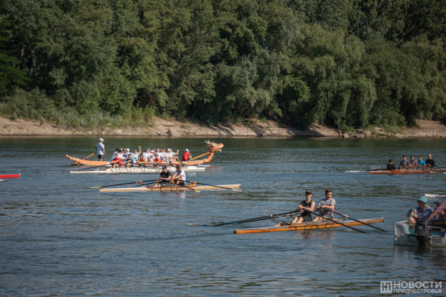 После торжественной части на воду спустили суда всех классов, включая экзотичную лодку «Дракон». На одной памятной дистанции - ветераны в восьмерках, молодежь – в одиночках и двойках.