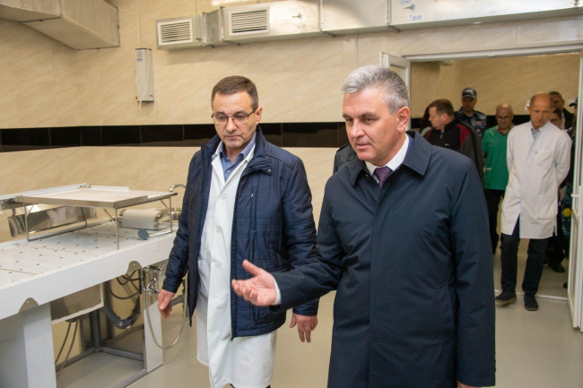 Как рассказали Вадиму Красносельскому, переезд из старого корпуса в новый комплекс завершили в начале текущей недели. Закупленное оборудование смонтировано и установлено. Холодильные камеры, специализированные столы, кресла, каталки приобретены в достаточном количестве. Функционирует лаборатория.