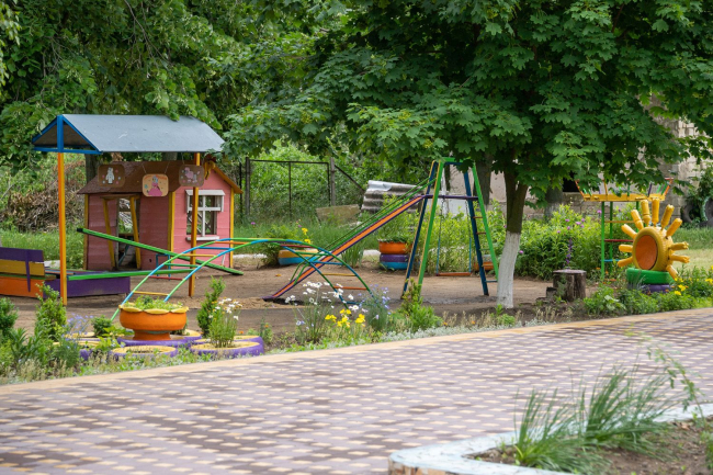 В предыдущие годы здесь заменили кухонное оборудование. Прилегающую территорию полностью замостили плиткой. Учитывая ее размеры и качество покрытия, Президент предложил использовать дорожки для обучения малышей навыкам езды на роликах и велосипедах.
