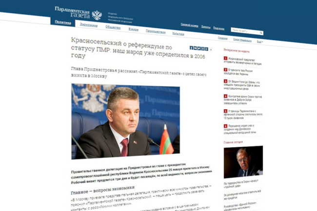 «Молдавия как суверенное государство может сколько угодно проводить любые референдумы, это их внутреннее дело, - сказал Красносельский “Парламентской газете”. - В Приднестровье такой референдум уже проведен».
