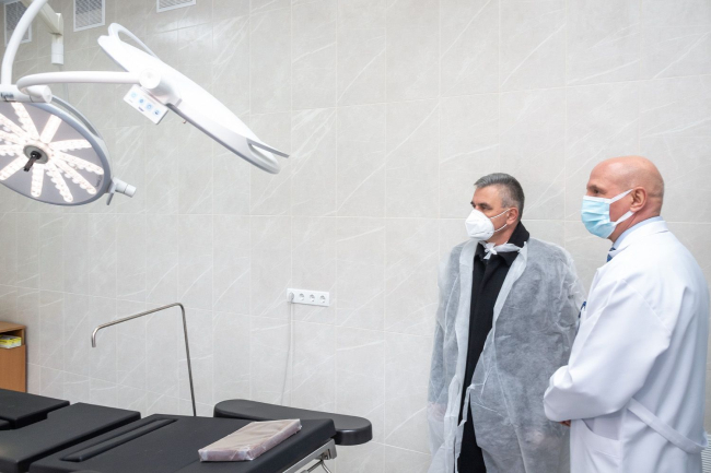 Президент посетил центральную горбольницу. Этот объект был включен в программу капитальных вложений. Изменения видны буквально с подъезда к учреждению: прилегающая территория благоустроена. Капитально отремонтирован и частично переоснащен операционный блок. Ремонт сделан и в отделении эндоскопии. На выполнение строительно-ремонтных работ и обновление оборудования Бендерской центральной городской больницы потрачено 1,8 миллиона рублей.