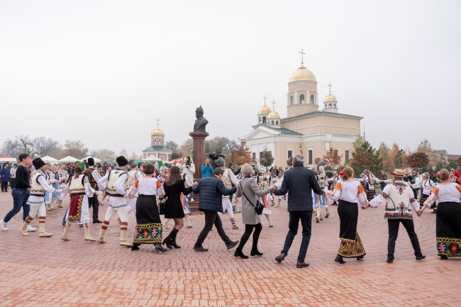 Вадим Красносельский акцентировал внимание на том, что это мероприятие значимо не только с экономической точки зрения – развития виноградарства и виноделия, но и для сохранения и популяризации народных традиций. Президент напомнил о многонациональности Приднестровья, отметив, что сегодня в бендерском парке гармонично переплелись культура, традиции, кухня, творчество проживающих на территории республики народностей, каждая из которых является неотъемлемой частью приднестровского народа. Главу государства спрашивали и о семейных традициях и ценностях.
