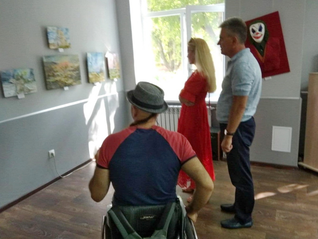 Бендеры, 21 августа. /Новости Приднестровья/. Президент ПМР Вадим Красносельский с супругой Светланой побывали на выставке творческих работ «АРТкатарсис», организованной на площадке бендерского спортивного клуба для людей с инвалидностью «Инвапанспорт».