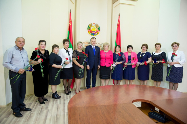 За многолетний добросовестный труд в деле обучения и воспитания подрастающего поколения, высокий профессионализм и в связи с Днем учителя Президент Евгений Шевчук наиболее отличившимся педагогам лично вручил государственные награды, а также присвоил почетное звание «Заслуженный работник народного образования ПМР», сообщает пресс-служба Главы государства.