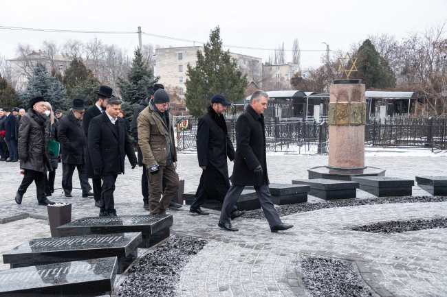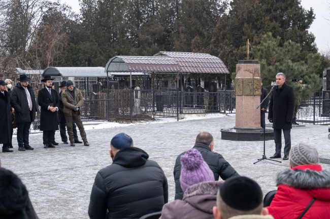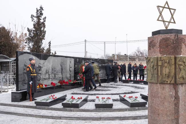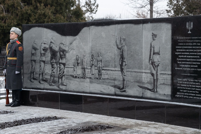 Бендеры, 27 января. /Новости Приднестровья/. По поручению Президента ПМР Вадима Красносельского на бендерском Еврейском кладбище был установлен памятник бендерчанам, расстрелянным немецко-румынскими оккупантами, а также павшим на фронтах Великой Отечественной войны. В нынешнем году это место стало центральной точкой сбора тех, кто счёл своим долгом почтить память погибших на территории Приднестровья жертв Холокоста, сообщает пресс-служба главы государства.