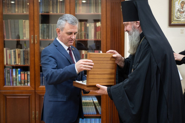Тирасполь, 18 января. /Новости Приднестровья/. Президент ПМР Вадим Красносельский встретился с архиепископом Тираспольским и Дубоссарским Саввой. Обсуждалась готовность к проведению в городах и сёлах республики крещенских купаний, сообщает пресс-служба главы государства.