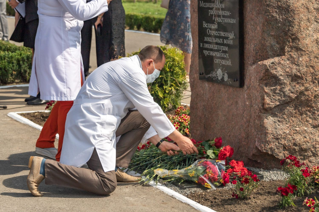 Тирасполь, 20 июня. /Новости Приднестровья/. У входа в здание медицинского факультета Приднестровского госуниверситета состоялась церемония открытия памятного знака. Место расположения выбрано неслучайно. В камне увековечена память о подвиге медицинских работников - участников Великой Отечественной войны, локальных войн и ликвидаторов чрезвычайных ситуаций. Символично, что создан памятник в Год здоровья, а открыт накануне Дня медицинского и фармацевтического работника, говорится в сообщении пресс-службы Президента.
