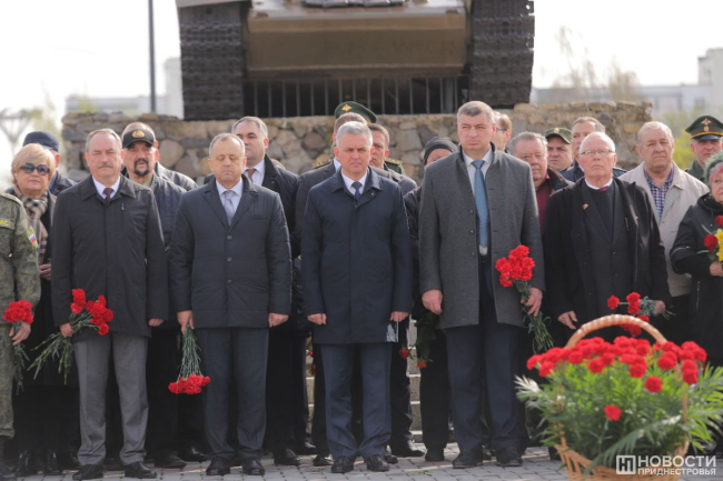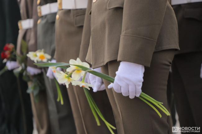 К мемориальным плитам и постаментам памятников возлагают цветы. Президент ПМР Вадим Красносельский от имени приднестровского народа оставил корзину символизирующих неувядающую благодарность потомков гвоздик у Вечного огня столичного Мемориала Славы.