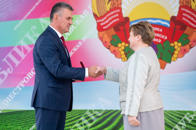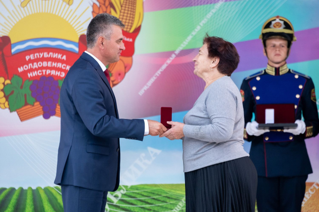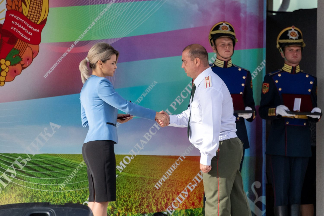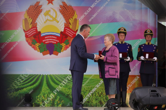 Сегодня чествуют порядка семидесяти человек. Ордена и медали вручают Президент ПМР Вадим Красносельский, председатель Верховного Совета ПМР Александр Коршунов и первый заместитель председателя Правительства ПМР – министр финансов Татьяна Кирова, сообщает пресс-служба главы государства.
