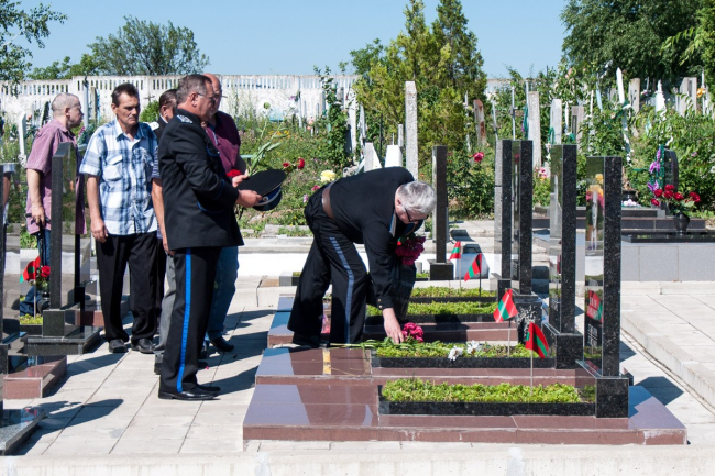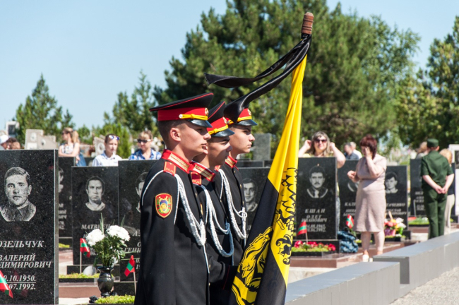 Глава государства, первый Президент ПМР, руководители всех ветвей власти, горожане, боевые товарищи, родные и близкие погибших возложили цветы к памятному знаку героев и скорбным обелискам.