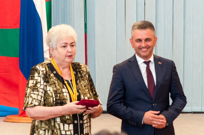 Всего указом президента сегодня были удостоены наград 35 человек. Орден «Суворова» I степени был вручён руководителю женского забасткома Галине Андреевой, юбилейной медалью «25 лет отражения военной агрессии Республики Молдова против Приднестровья» были награждены председатель Республиканского Союза защитников ПМР Владимир Бучка, председатель Тираспольского ОСТК Владимир Емельянов. Среди наград и орден «Почёта», орден «Трудовая Слава», медали «Защитнику Приднестровья», «За трудовую доблесть», «25 лет Приднестровью».