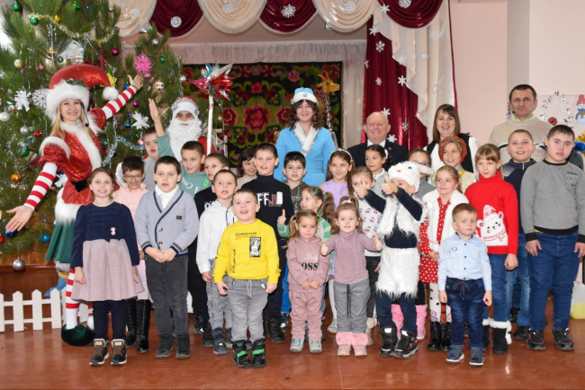 В этом году государственная администрация пригласила на праздник аниматоров из Рыбницы, которые подарили ребятам настоящую сказку: игры, танцы, шоу мыльных пузырей. Главными участниками программы стали Дед Мороз и Снегурочка.