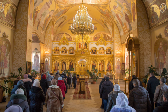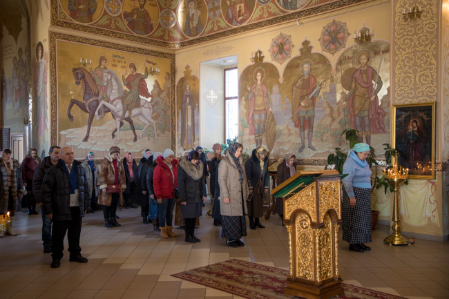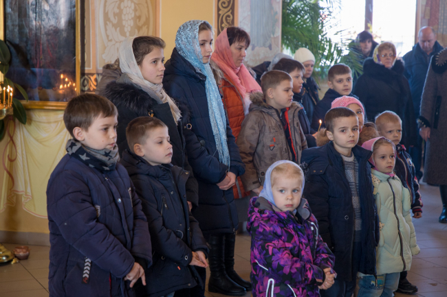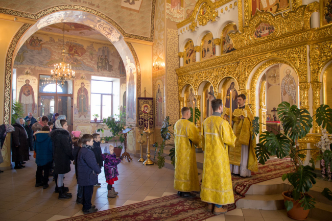 После занятия ребята пошли в храм на церковную службу. Так как не все дети могут выстоять на богослужении 2,5 часа, их там оставляют примерно на 30 минут. Затем у учеников есть время для подвижных игр.