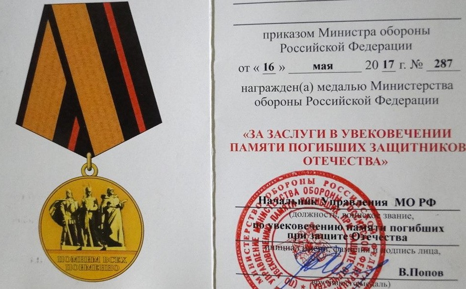 Тирасполь, 26 августа. /Новости Приднестровья/. Министерство обороны России наградило приднестровских поисковиков медалями «За заслуги в увековечении памяти погибших защитников Отечества».