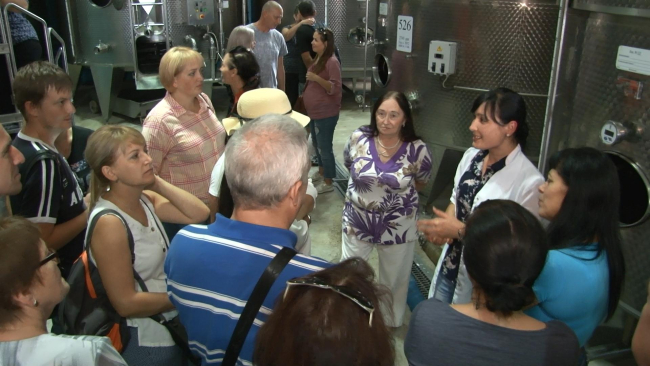 Далее продукция поступает в Тирасполь на завод, где осуществляется розлив. Гости дойбанского производства во время экскурсии смогли продегустировать «божоле» - молодое вино.