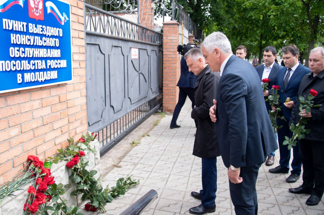 В Тирасполе возложили цветы к зданию выездного консульского обслуживания посольства РФ