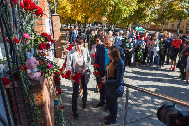 Представители госвласти и жители республики продолжают нести цветы к российскому консульству в память о погибших в керченском колледже