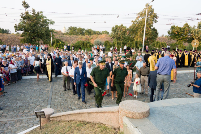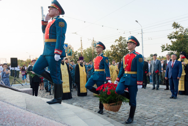 Бендеры, 29 августа./Новости Приднестровья/. Лития и возложение цветов к памятнику воинам 55-го Подольского пехотного полка стали частью памятных мероприятий в Бендерах. В них приняли участие Президент ПМР Вадим Красносельский,  представители ветвей государственной власти, духовенство, жители города.