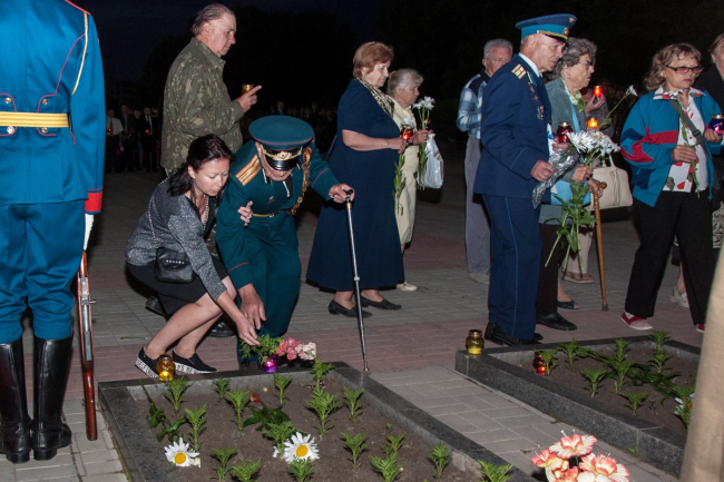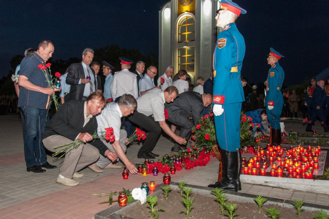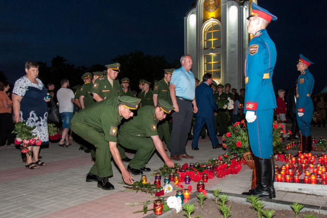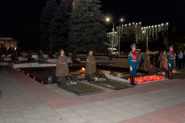 Тирасполь, 22 июня. /Новости Приднестровья/. В столице Приднестровья на рассвете зажглись свечи памяти по погибшим в годы Великой Отечественной войны. На Мемориале Славы около четырех часов утра собрались жители Тирасполя, высшее руководство страны, представители Южной Осетии и Абхазии, а также командование Оперативной группы российских войск (ОГРВ) в Приднестровье, чтобы почтить память павших в боях с фашизмом во имя Родины, свободы и жизни народов.