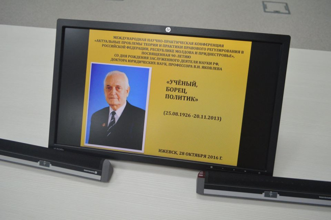 Тирасполь, 4 ноября. /ИА «Новости Приднестровья»/. На прошлой неделе приднестровская делегация побывала на конференции в Удмуртском государственном университете на Международной научно-практической конференции, посвященной 90-летию со дня рождения заслуженного деятеля науки РФ, доктора юридических наук, профессора Василия Никитовича Яковлева.