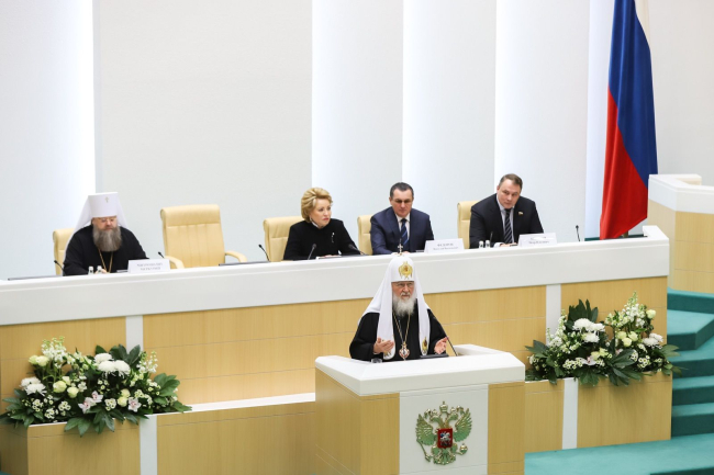 В контексте своего выступления предстоятель обратился к законодателям с просьбой разработать отдельный закон о статусе многодетных семей. Предложение было всецело поддержано сенаторами. Спикер Совета Федерации РФ поручила начать разработку документа незамедлительно. Как отметила Валентина Матвиенко, в России меры поддержки многодетных разбросаны по разным законам и необходимо собрать их в единый документ.