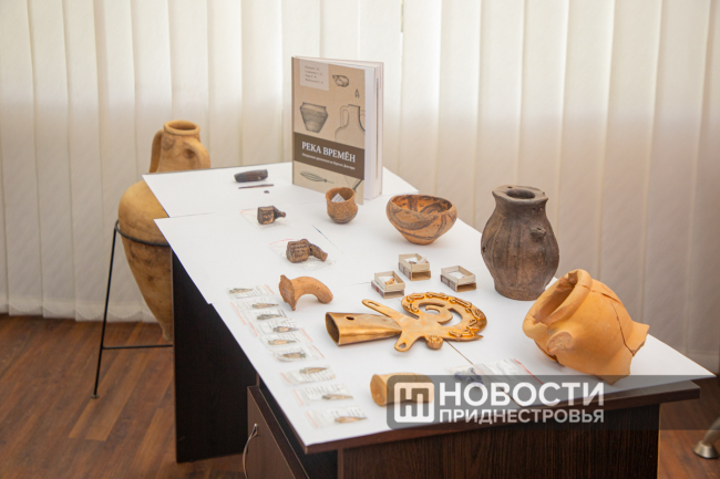 На импровизированной выставке молодежь увидела 26 экспонатов, найденных в разное время приднестровскими искателями древностей. Это наконечники стрел, бронзовое навершие, амфоры, чаша, статуэтки, а также украшения в виде бус, бисера, монет и ракушек. Найденные предметы относятся к каменному, медному и раннему железному веку.
