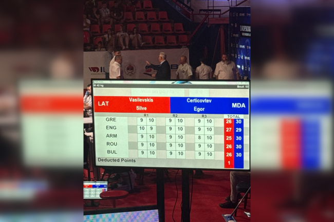 Егор Чертыковцев (до 42 кг) со счетом 5:0 одержал победу над представителем Латвии Сильвестрисом Василевскисом.