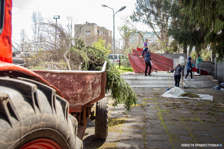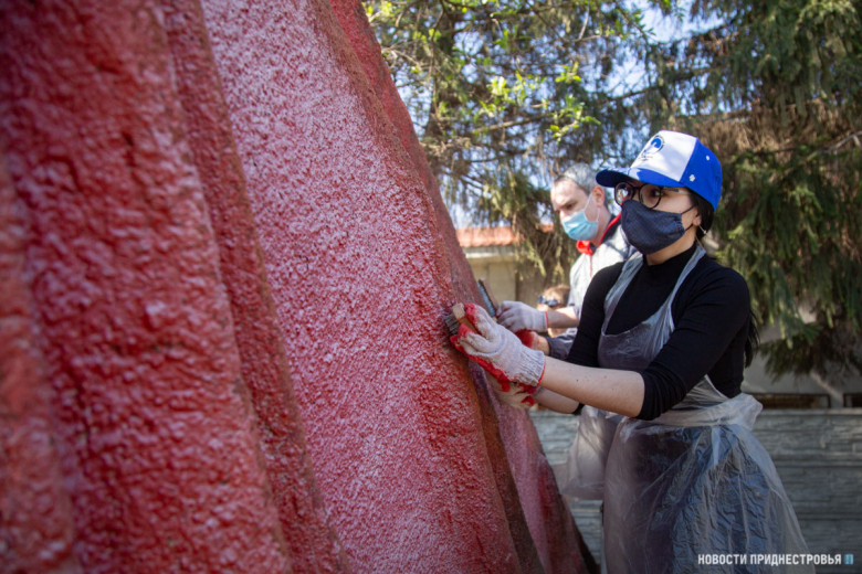 В Тирасполе активисты благоустраивали территорию возле памятника погибшим в Великой Отечественной войне, установленного по улице Мира