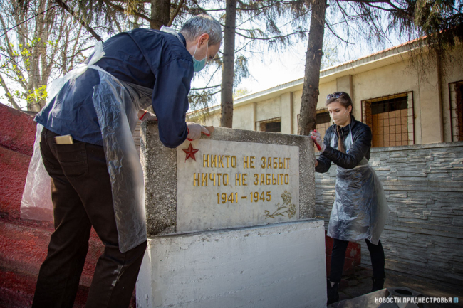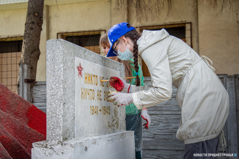 Мероприятия по благоустройству памятных мест также прошли в Бендерах. Как рассказал Евгений Назаренко, активисты школьного отряда «Волонтёры Победы» бендерской средней школы № 15 работали на центральном городском кладбище. Они благоустраивали забытые могилы фронтовиков Первой и Второй мировой войн.