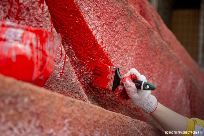Небольшой группой приднестровские «Волонтёры Победы» очищали и красили памятник, косили траву и пилили старые ветки деревьев, которые нависали над памятником.