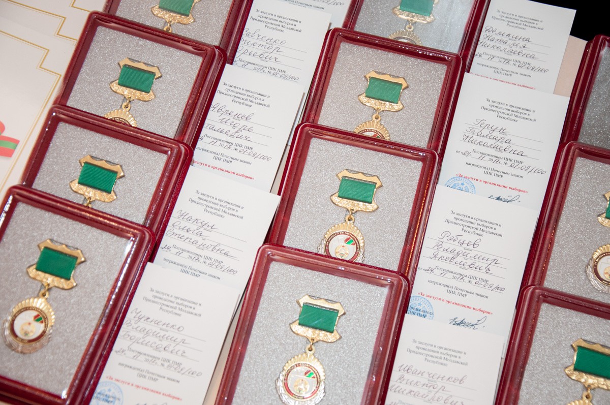 Несмотря на то что юбилей Центризбирком Приднестровья отметил ещё 2 года назад, к нынешней годовщине были изготовлены нагрудные знаки, которые вручили как нынешним, так и бывшим членам избиркомов разного уровня, представителям органов госвласти, а также нашим коллегам-журналистам.
