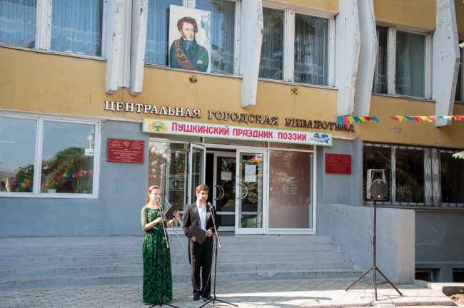 Основная праздничная программа прошла у Центральной городской библиотеки, носящей имя Пушкина. Здесь вспоминали вклад поэта в мировую и русскую культуру, а также след, оставленный им в нашем крае.