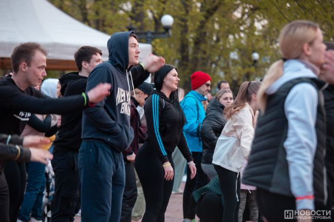 Сегодня в парке «Победа» в половине седьмого вечера заиграла музыка, и аниматоры стали приглашать прохожих присоединиться к тренировке. Желающих оказалось немало, участникам раздали неоновые браслеты. И началась разминка. Затем – основная часть тренировки с фитнесом и силовыми упражнениями. Чтобы немного расслабиться, танцевальный мастер-класс и выступления местных артистов.