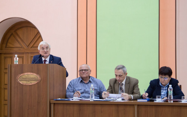 Говоря об итогах работы университета в 2016-2017 учебном году, а также задачах и перспективах развития учебного заведения, ректор вуза Степан Берил отметил ряд направлений. Среди них - продолжение работы по внедрению новых образовательных и информационных технологий в учебный процесс, переход на образовательные стандарты нового поколения в рамках дальнейшей гармонизации с образовательной системой Российской Федерации, проведение подготовительных мероприятий по открытию магистратуры на факультетах, в филиалах и институте.