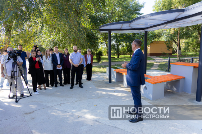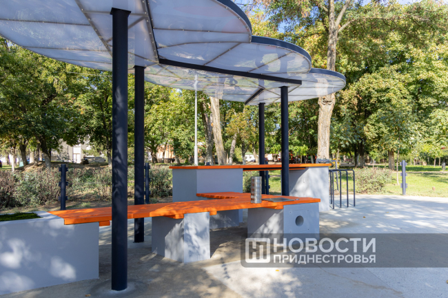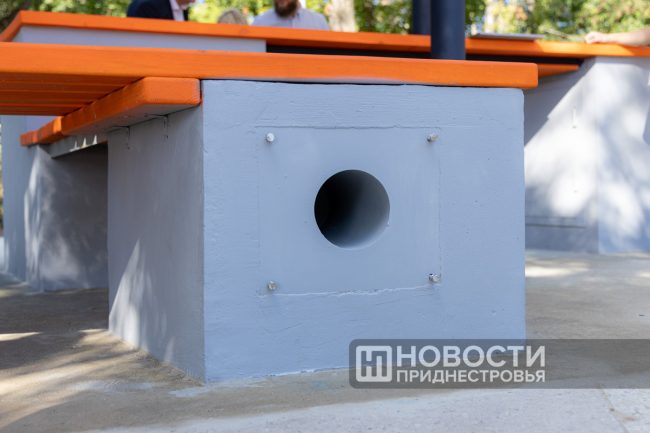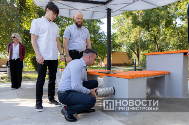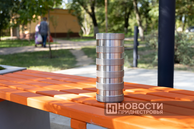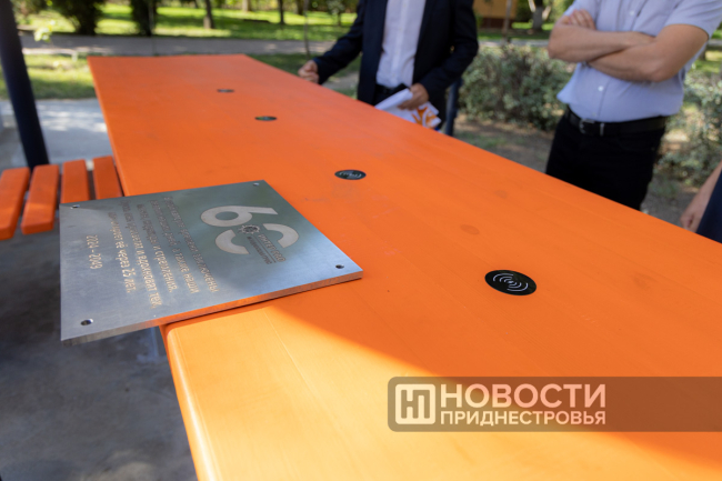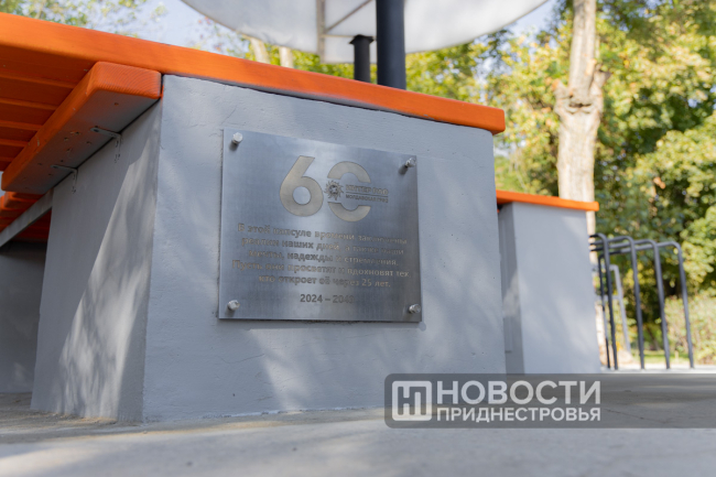 Днестровск, 26 сентября. /Новости Приднестровья/. По случаю 60-летия Молдавской ГРЭС её работники заложили Капсулу времени. Металлический сосуд встроили в новую скамейку. Это была идея коллектива – обустроить в центре Днестровска современную локацию. В скамейке, выполненной в корпоративных цветах компании «Интер РАО» (МГРЭС вошла в её состав почти 20 лет назад), есть функция беспроводной зарядки для гаджетов, а крыша, стилизованная под облако, будет светиться по ночам.