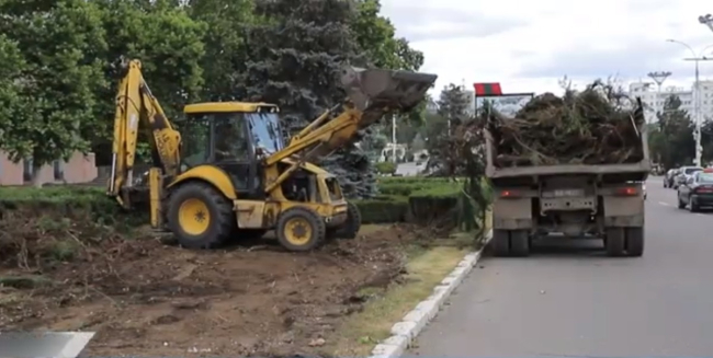 Тирасполь, 9 июля. /Новости Приднестровья/. На разделительной полосе напротив Мемориала Славы в Тирасполе убирают старые высохшие кустарники и растения. Их заменят на новые клумбы или газон, сообщает Первый Приднестровский телеканал.