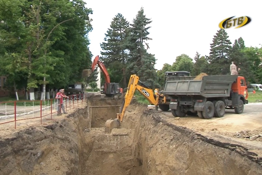 У Дворца культуры прокладывают новые коммуникации, после чего приступят к установке фонтана, мощению дорожек и высадке деревьев